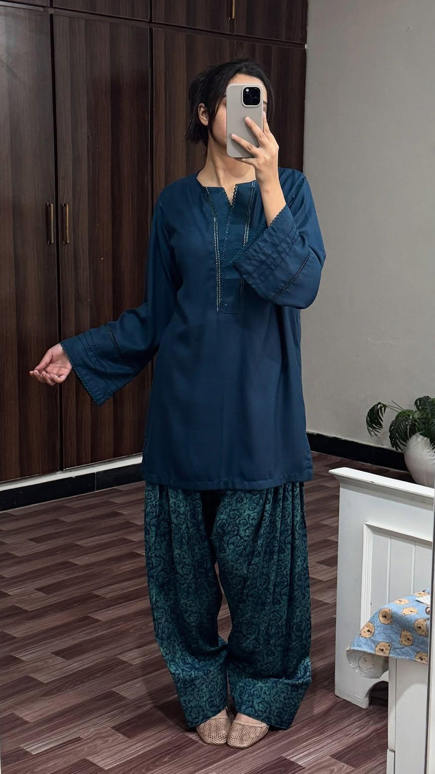 Luxury Plain Shirt + Luxury Digital Farshi Shalwar