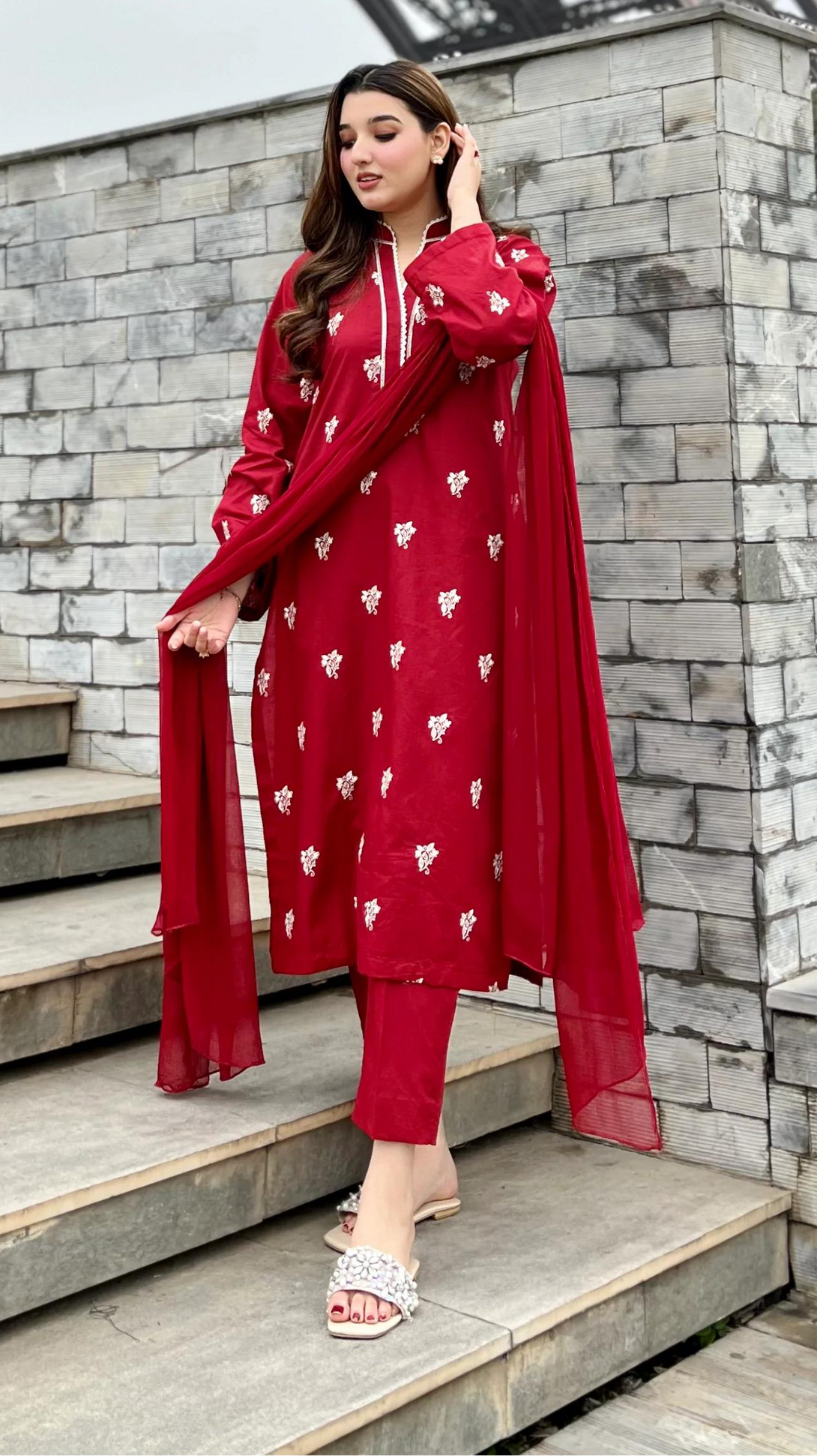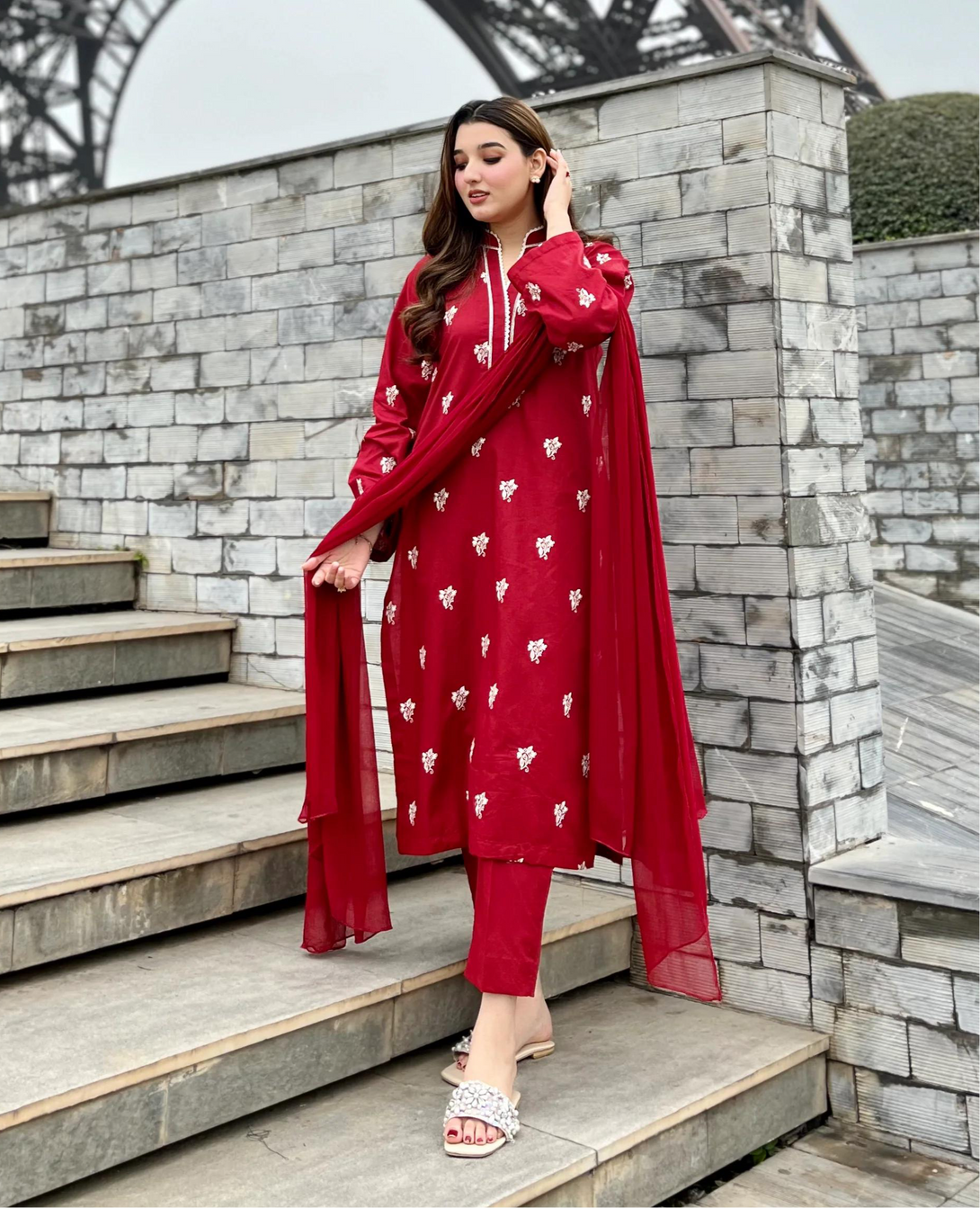 EMB Shirt Lace work + Plain Trouser + Plain Duppata